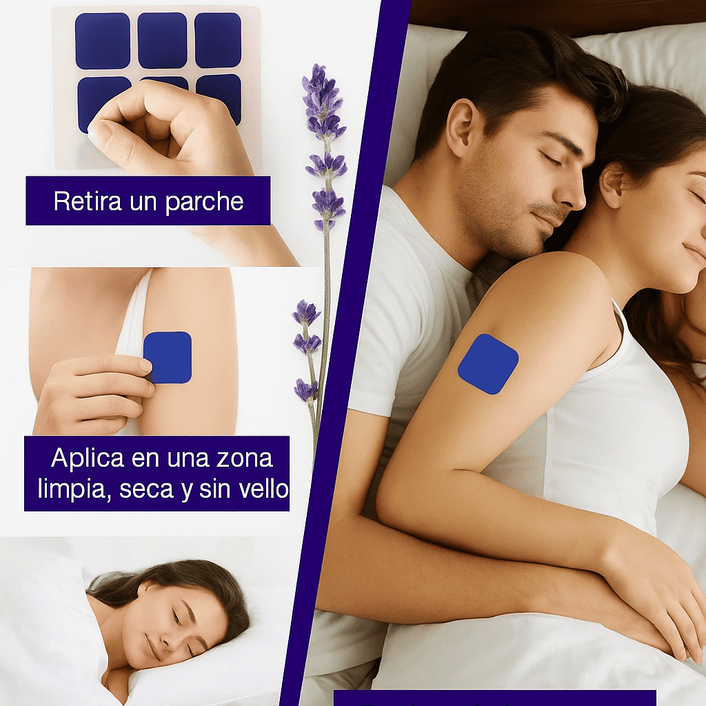 Los parches usan ingredientes naturales (lavanda y manzanilla). No suelen causar efectos adversos ni dependencia; si tienes piel sensible, prueba en una zona pequeña antes.